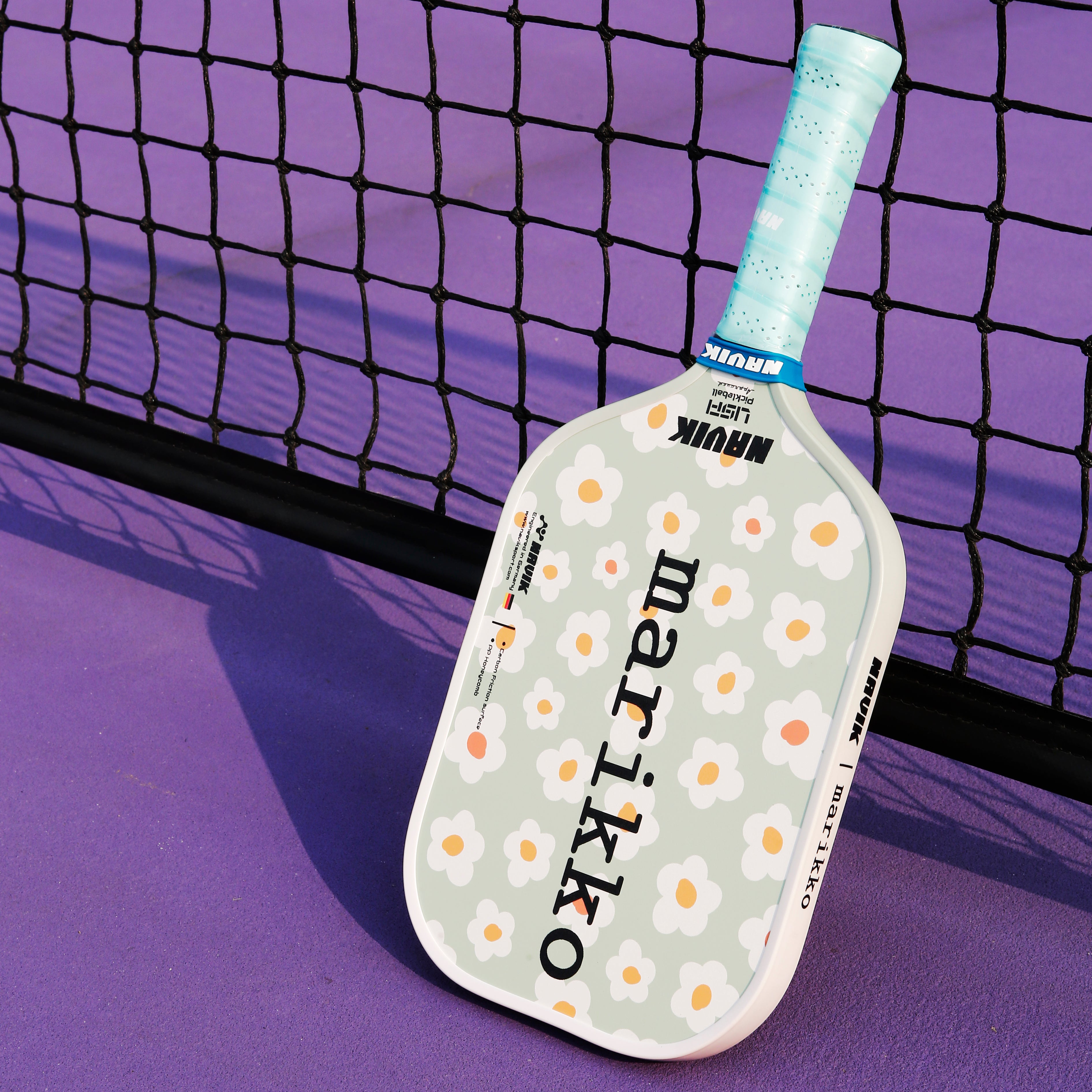 Inspired by Scandinavian floral patterns, the Marikko collection is both friendly and bold. With soft pastel tones and a minimalist typeface, this paddle brings joy and uniqueness to every rally.